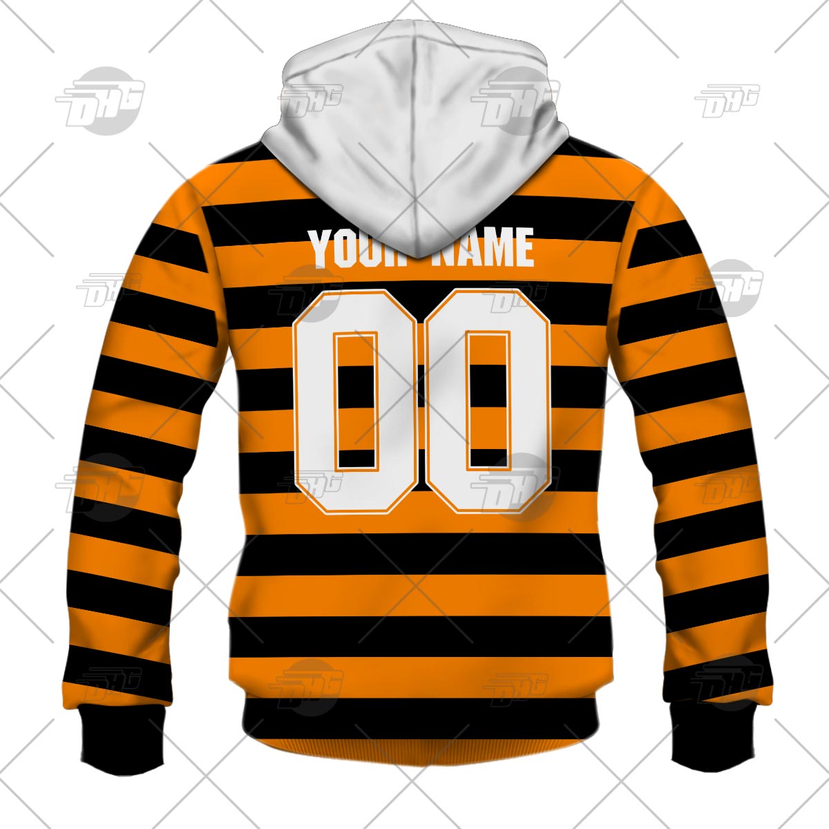 This Pullover Hoodie features the Balmain Tigers Jersey color scheme and graphics across the chest for an eye-catching showcase of your pride. Designed for men, women, and kids.