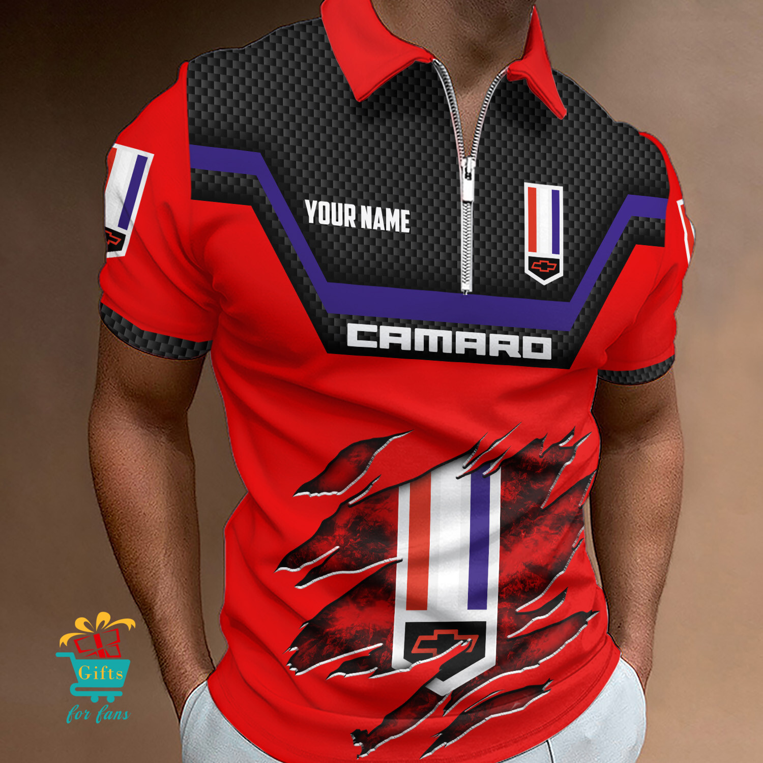 Chevrolet Camaro Custom Name New Design Zipper Polo Shirt Product Features
