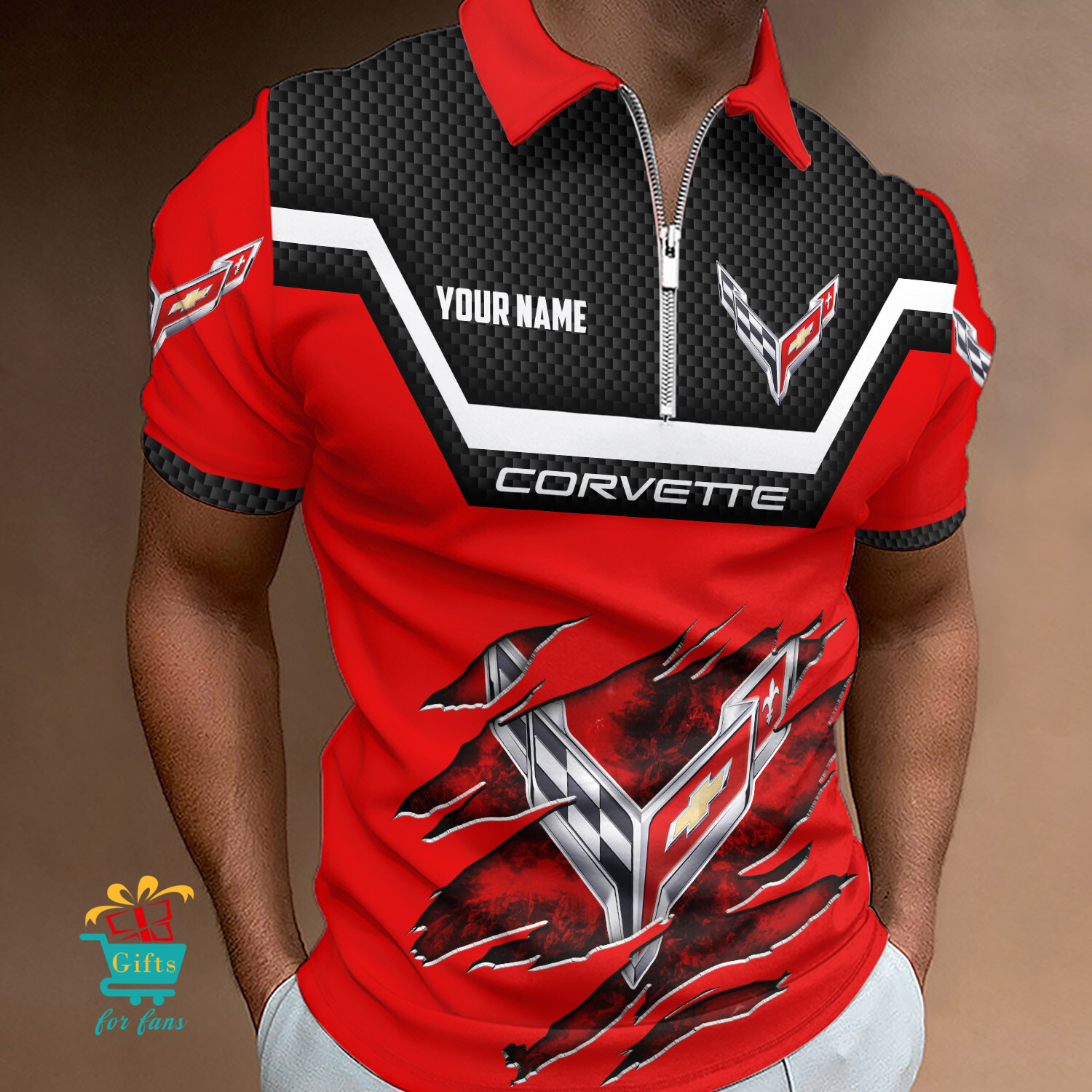 Chevrolet Corvette Custom Name New Design Zipper Polo Shirt