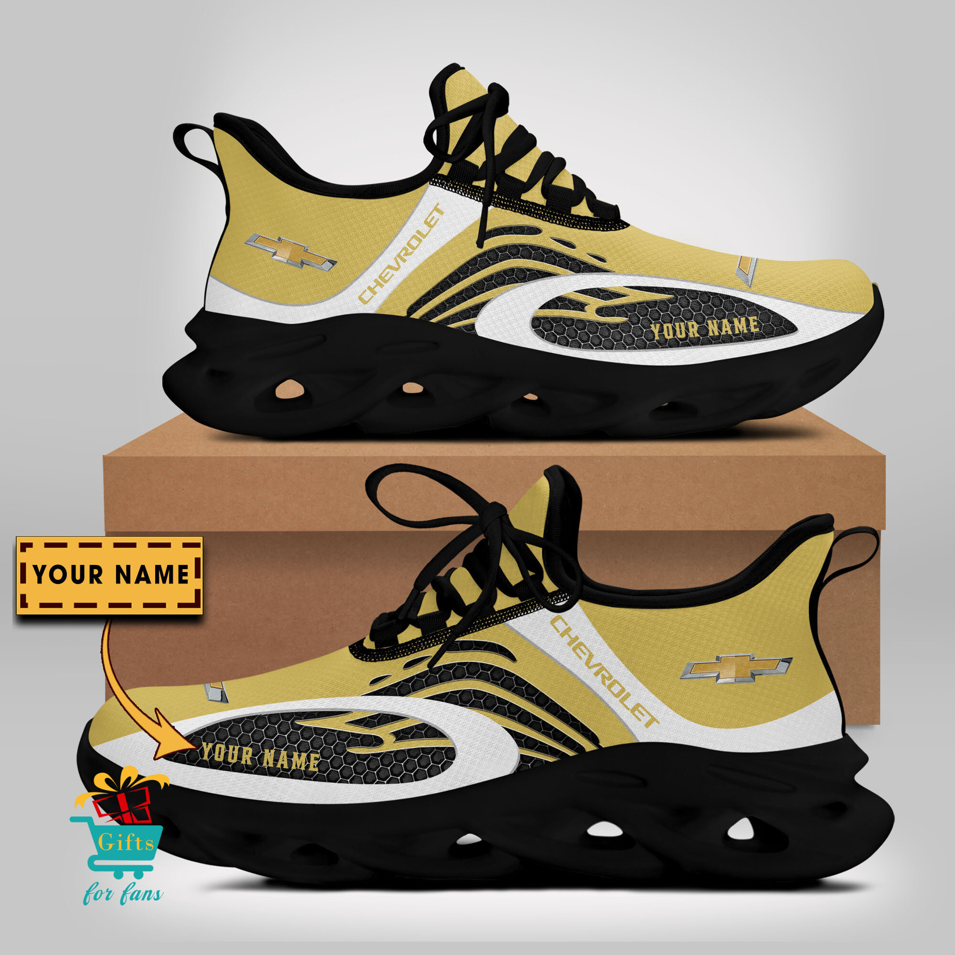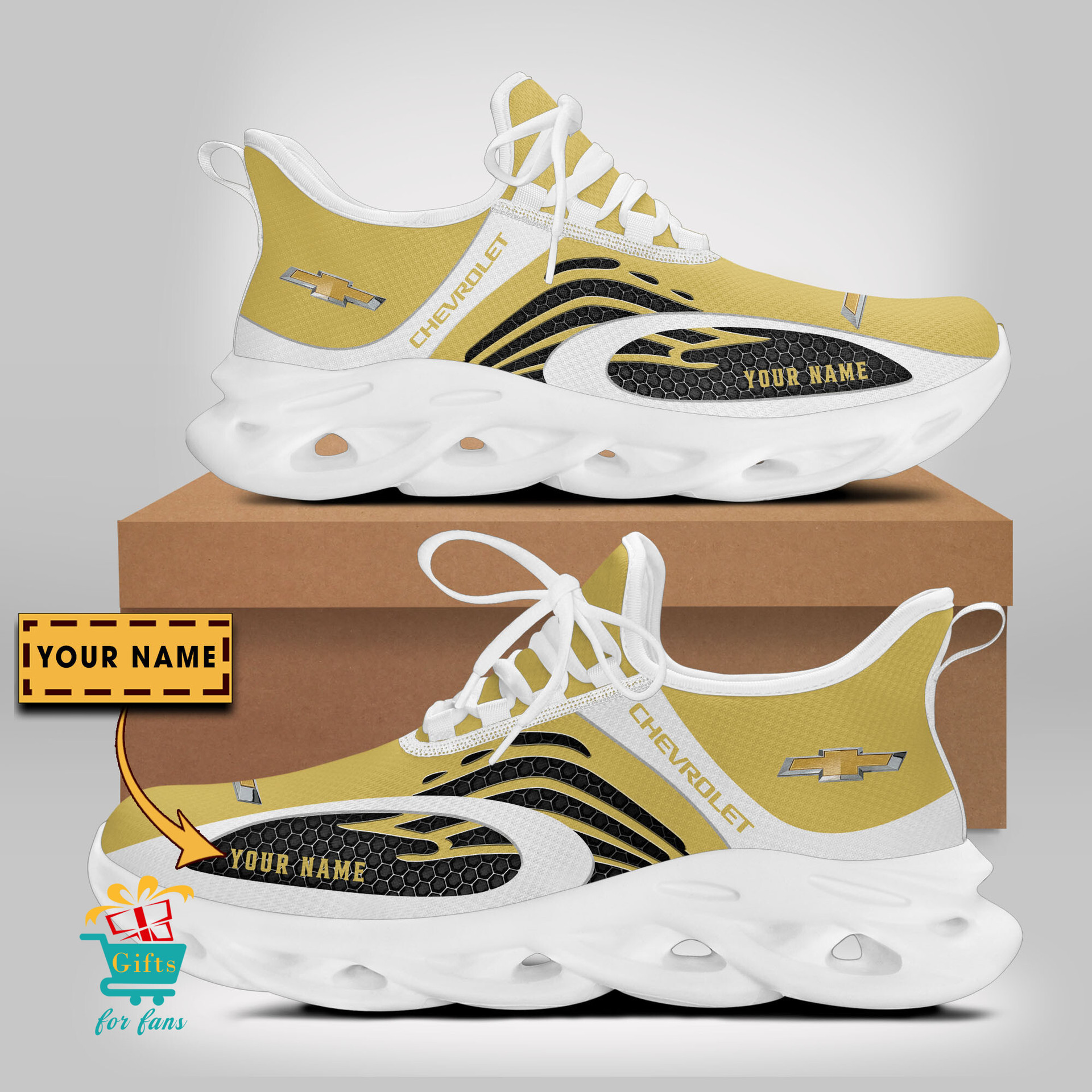 These shoes features crisp Chevrolet graphics, designed for both men and women.