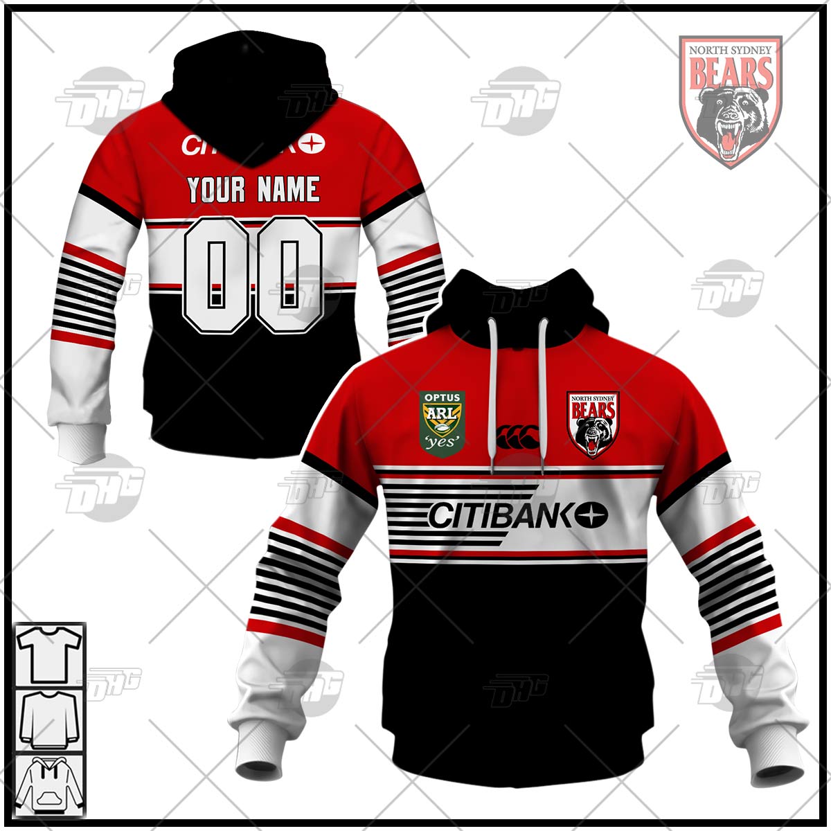 North Sydney Bears Custom Name Number 1997 Vintage Retro Jersey Pullover Hoodie